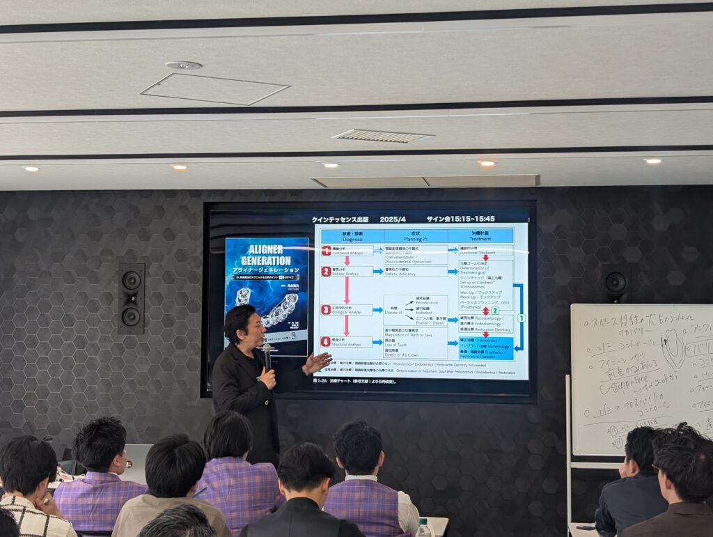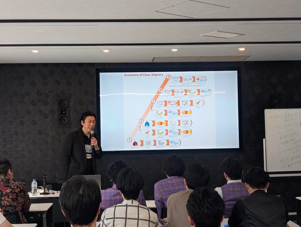 数多くのアライナー矯正治療に携わり、全国で講演活動を行う尾島賢治先生をお招きし、 エス歯科グループセミナールームで院内講習を行いました。