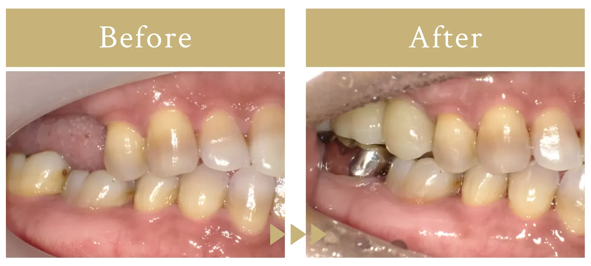 サイナスリフトで骨量を増やして、インプラントを同時に埋入しました。