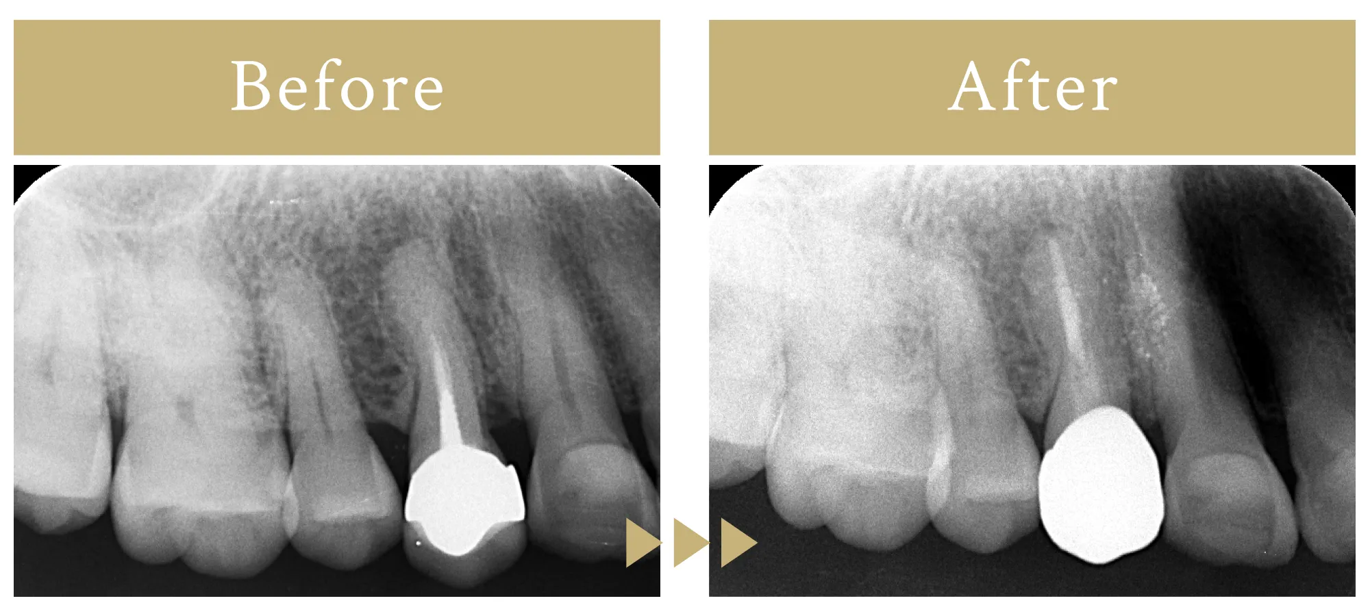 一度根管治療を行った歯の症状の再発、再感染に対して精密根管治療を行いました。